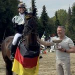 Ihren allerersten internationalen Sieg konnte sich Jana Schoupal in der CCI3*-S mit dem erst neunjährigen Carsandro (Züchter: Ute & Dieter Schulz & Mäkelburg; Besitzerin: Petra Schoupal) sichern. Das bereits mehrfach auf 3*-Niveau platzierte Paar konnte Dank der schnellsten Geländerunde im 27-köpfigen Starterfeld einige Plätze gut machen und die Konkurrenz hinter sich lassen. Nach der Dressur lag die gelernte Pferdewirtin mit -35,7 Punkten noch auf dem 11 Platz. Aufgrund eines Abwurfes im Springen fiel das Paar, welches 2022 beim Bundeschampionat in Warendorf das ,,kleine Finale“ gewinnen konnte, auf den 14. Platz zurück. Da sie jedoch im Gelände als einziges Paar innerhalb der Bestzeit von 6:09 Minuten bleiben konnten, zogen sie an zahlreichen Mitstreitern vorbei und konnten sich schlussendlich mit -39,7 Punkten den Sieg sichern.