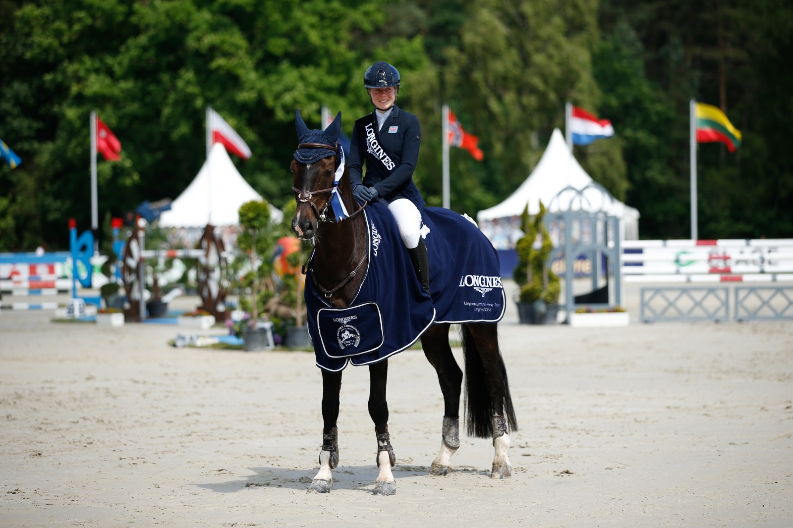 Und den konnte die Siegerin noch gar nicht richtig fassen: Die 23-jährige Britin Mollie Summerland war mit ihrer Freundin Tilly Berendt nach Deutschland gereist, „um mal 5* zu reiten“. Das hatte sie mit ihren Charly van ter Heiden bereits im letzten Oktober schon in Pau recht erfolgreich getan und wurde Zehnte. Da verhinderten allerdings zwei Abwürfe im Springen eine noch bessere Platzierung.