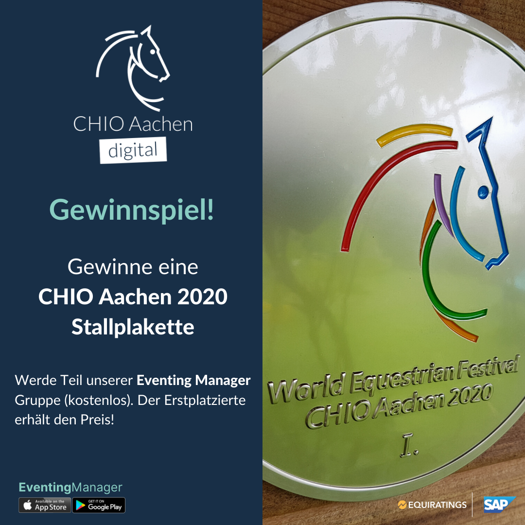 Spiel mit und gewinne eine CHIO Aachen Stallplakette 2020. Das ganze funktioniert über die EventingManager App, die im AppStore oder bei GooglePlay heruntergeladen werden kann.