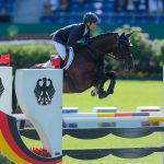 Zuvor hatten aber Julia Krajewski und Amande de B’Neville gezeigt, dass sie sich weiterhin auf dem Weg zur Championatsform befinden. Mit 14 Sekunden über der Bestzeit legte Julia den Ritt nicht bis aufs letzte Tempo an, lieferte aber eine bestechend sichere und souveräne Runde ab. Einzig am Wasser im Stadion strauchelte die Stute in der Landung einmal kurz- ein Schreckmoment, nachdem hier schon mehrere Pferde ins Wanken geritten und teils auch die Reiter aus dem Sattel kamen. Mit dieser Runde brachte Julia das deutsche Team wieder auf Kurs, sie kann sich im Endergebnis über Platz 9 in der Einzelwertung freuen.