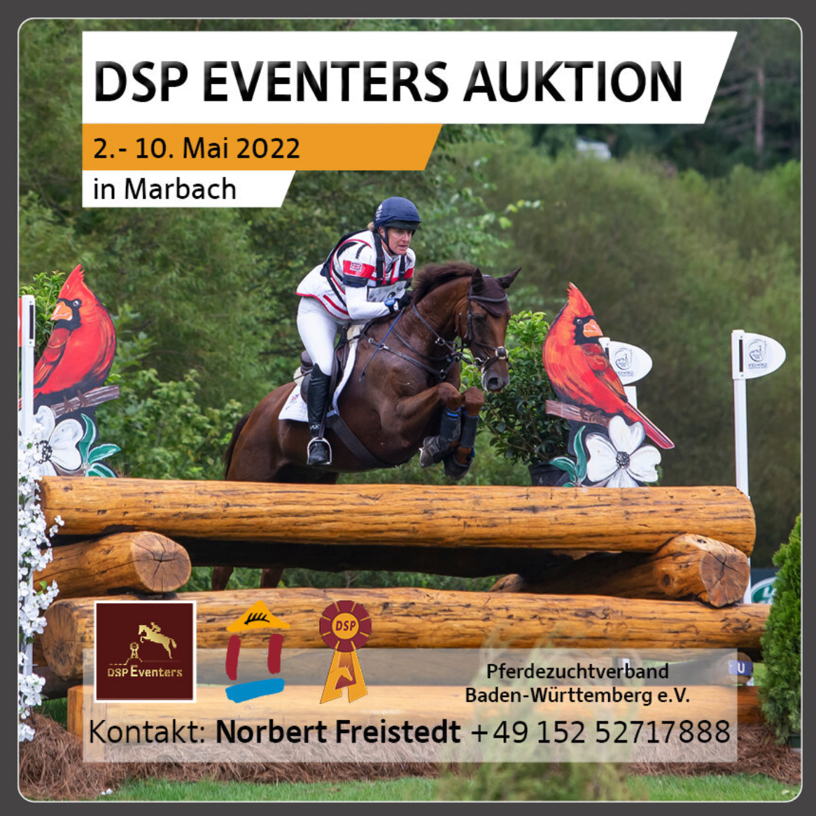 Ab sofort sind alle Pferde unter pzvbw.hsr-auktion.de mit Fotos und Videos veröffentlicht. Sie stehen in Marbach vor und während des CCI4* vom 2. bis 8. Mai zum Ausprobieren bereit. Die Auktion findet am Dienstag, den 10. Mai ab 20:00 Uhr als Online Auktion statt. Für Fragen rund um die Kollektion steht Vermarktungsleiter Norbert Freistedt unter +49 (0) 152 – 52 717 888 gern zur Verfügung.