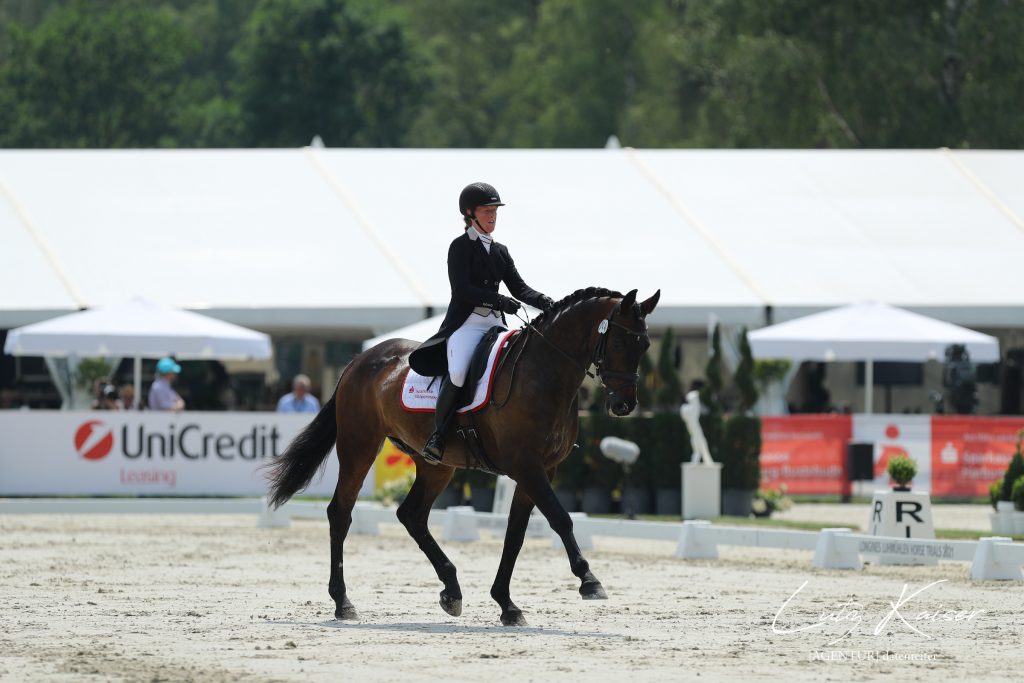 Auch sicherte sich Sandra Auffarth mit ihrem zweiten Olympiakaderpferd Viamant du Matz einen Platz in den top ten, mit -27,1 rangieren sie derzeit an sechster Stelle. Der Fuchswallach machte es seiner Reiterin nicht ganz leicht, doch es gelang ihr, einige Höhepunkte herauszuarbeiten und ihn immer wieder zur Gelassenheit zurückzubringen.