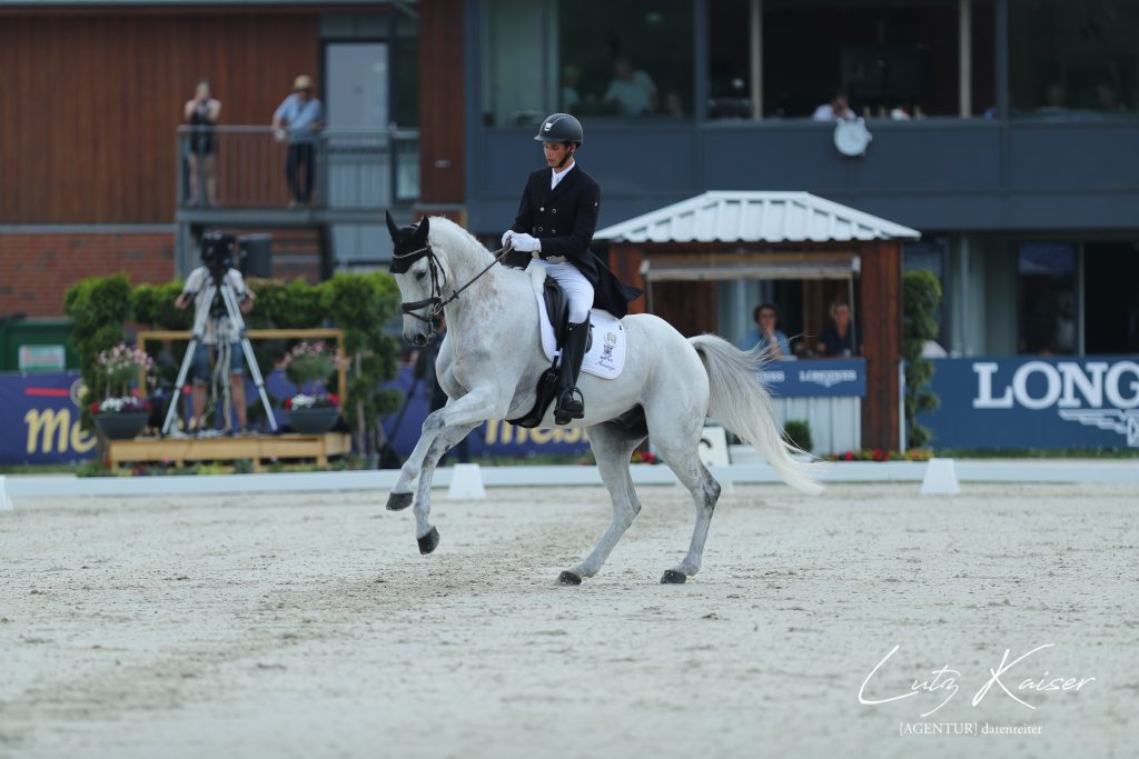 Einen guten Auftakt schafften auch Malin Hansen-Hotopp und Monsieur Schnabel, die mit -32,5 auf Platz 9 in Lauerstellung liegen, bevor es morgen ins Gelände geht.