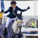 Da die Reiter den Regeln nach nur mit dem besser platzierten Pferd in der Meisterschaftswertung berücksichtigt werden, rückte die Fünftplatzierte der 4*-Prüfung auf den Silberrang in der Meisterschaftswertung an Stelle von Kilcandra Ocean Power auf: Sandra Auffarth präsentierte ihren Viamant du Matz so gut wie selten über alle drei Disziplinen hinweg. Insbesondere in der Dressur, der Disziplin wo die beiden in der Vergangenheit noch das ein oder andere Pünktchen hatten liegen lassen, zeigten sie sich mit fast 73 Prozentpunkten deutlich verbessert: ,,Hier haben wir einfach über die Zeit nochmal an vielen kleinen Stellschrauben gearbeitet. Außerdem macht es einen großen Unterschied, dass Anne-Kathrin Pohlmeier uns so engmaschig betreut und auch auf dem Abreiteplatz bis zur letzten Minute dabei ist und uns auf den Punkt vorbereitet. Tatsächlich glaube ich auch, dass da sogar noch ein paar Prozente mehr drin sein könnten. “ Der Parcours, stellte die hochdekorierte Springreiterin und ihren ,,Mat“ vor keine großen Herausforderungen. Motiviert und routiniert durchlief er den Parcours und berührte dabei keinen der 15 zu überquerenden Sprünge. Ihr Endresultat lautete -32,8 Punkte. Die Schleife durfte jedoch nicht Viamant du Matz persönlich entgegennehmen, er ist nämlich kein großer Fan von Siegerehrungen. Stattdessen durfte Crazy Carlotta, das Pferd von Johanna Marloh mit Auffarth im Sattel auf die Ehrenrunde gehen.