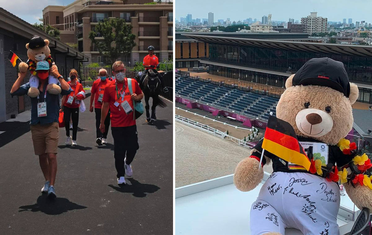 Finanzielle Mittel sind dringend nötig, deshalb soll nun das Maskottchen der Olympiareiter zugunsten der Betroffenen der Flutkatastrophe im Rahmen einer Spendenaktion verlost werden. „Yoshi“, das ist der Name des ca. 70cm großen Teddybärs, soll auch über die Olympischen Spiele hinaus Glück bringen und Gutes tun. Die Reiterinnen und Reiter sind sich sicher: „Mit den Autogrammen der Dressur-, Vielseitigkeits- und Springequipe sowie persönlichen Olympiasouvenirs im Gepäck ist dieser Teddy ein wohl einmaliger Hauptgewinn, der hoffentlich zahlreiche Fans aller Disziplinen dazu ermuntert in den Lostopf zu springen! Jeder Cent zählt, wir hoffen auf möglichst viel Beteiligung und deshalb soll jeder den Betrag spenden, der ihm richtig erscheint“.